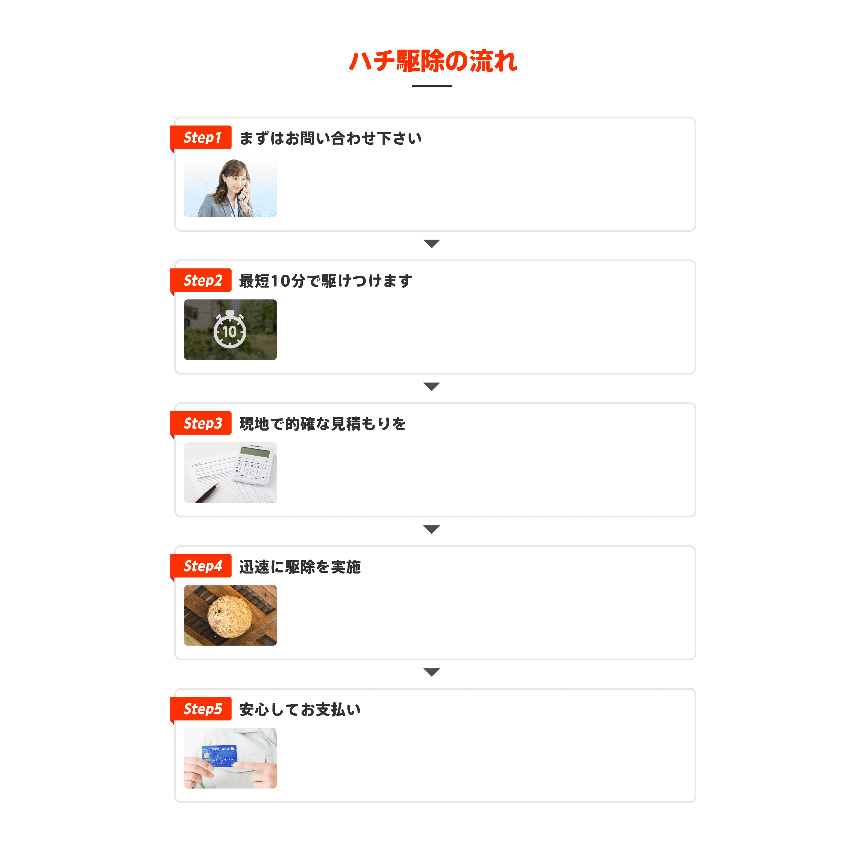 ご了承いただけましたら、すぐに駆除作業に取りかかります。ハチの巣を速やかに駆除いたします。