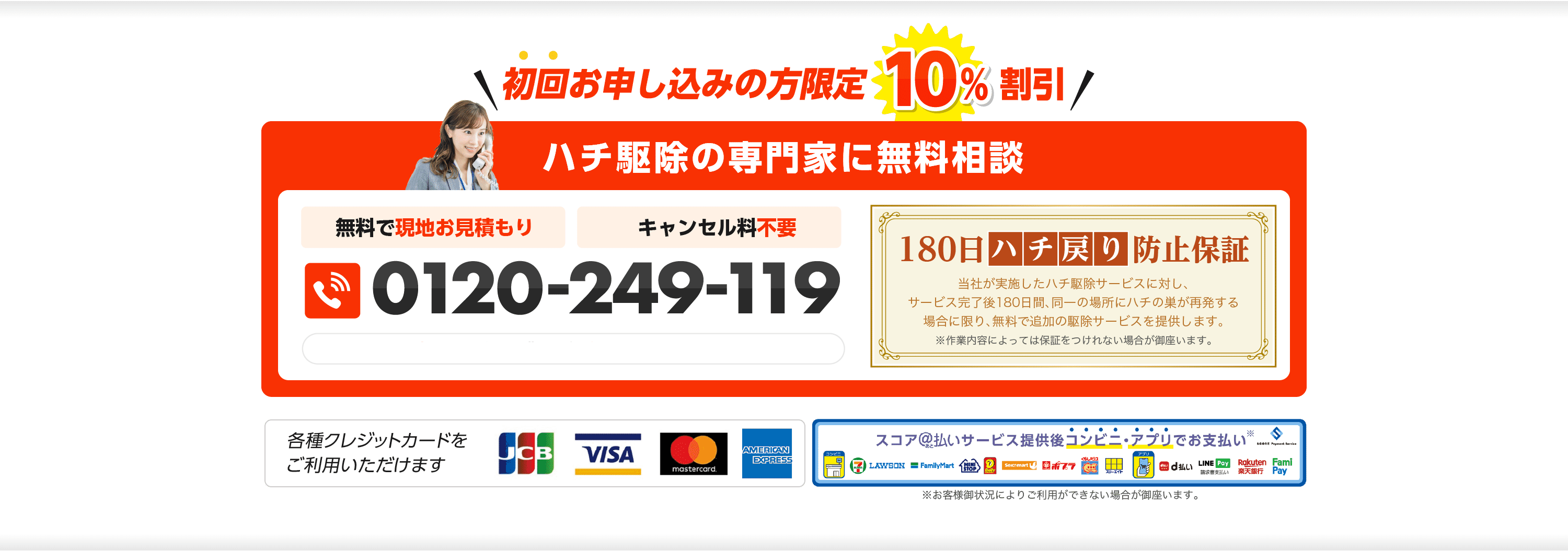 駆除が完了したことをご確認いただき、お支払いいただきます。