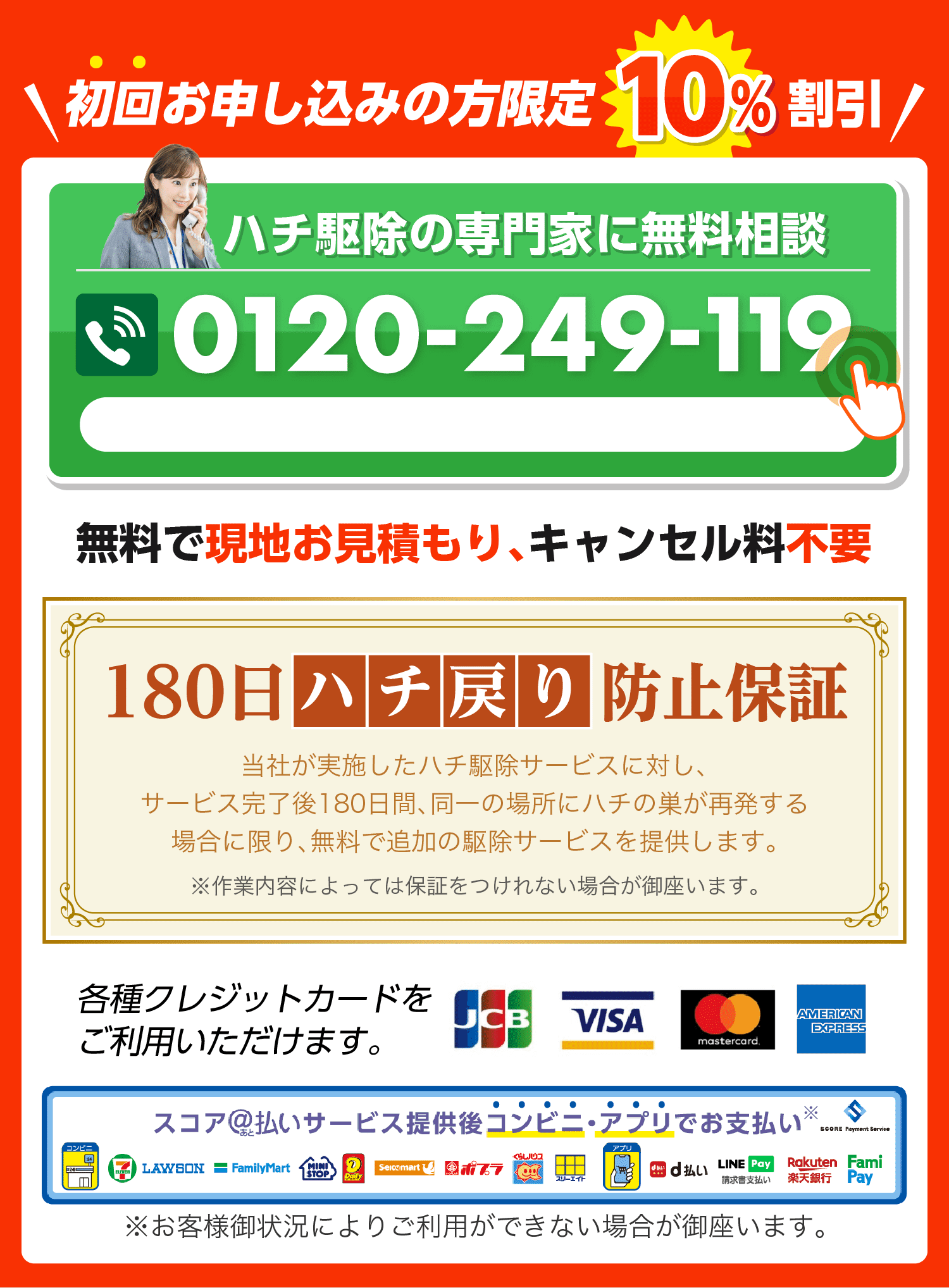 ハチの巣トラブルに関するご相談は、お電話またはメールフォームからお寄せください。